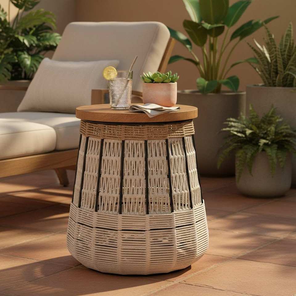 Elegant Handmade Rope End Table For Bedroom Living Area Balcony Corner And Decorative Furniture Use