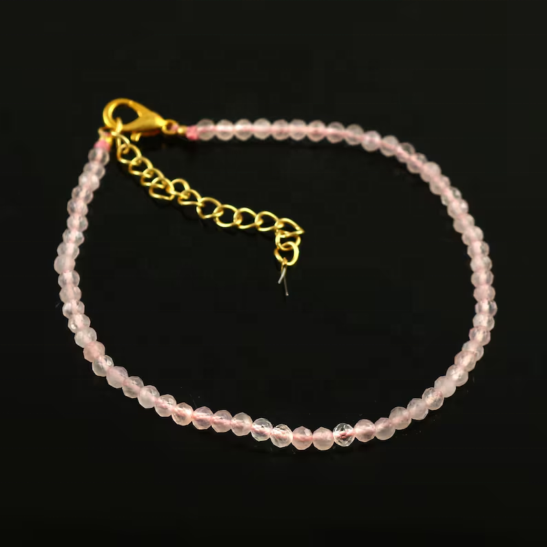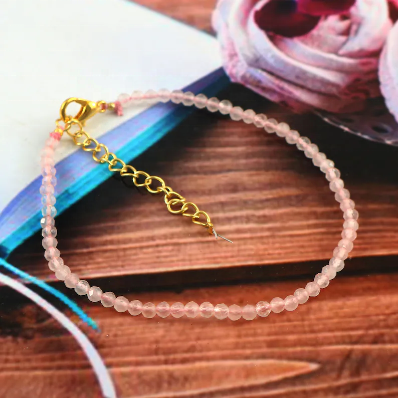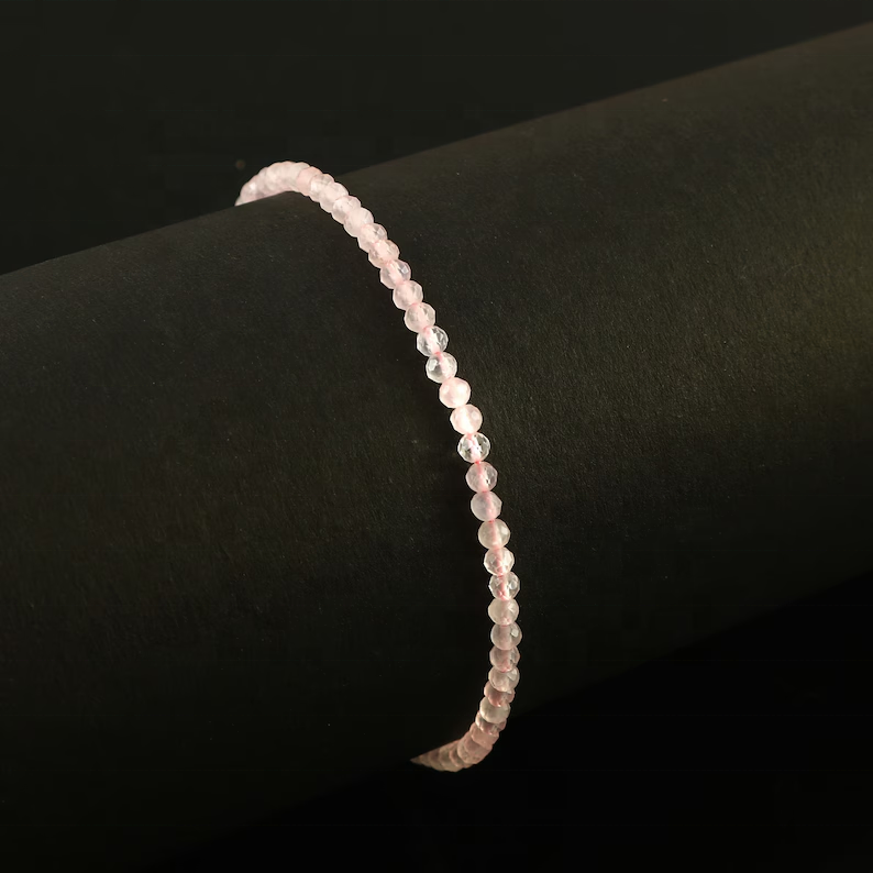 Natural Rose Quartz Micro Faceted Round Beaded Bracelet