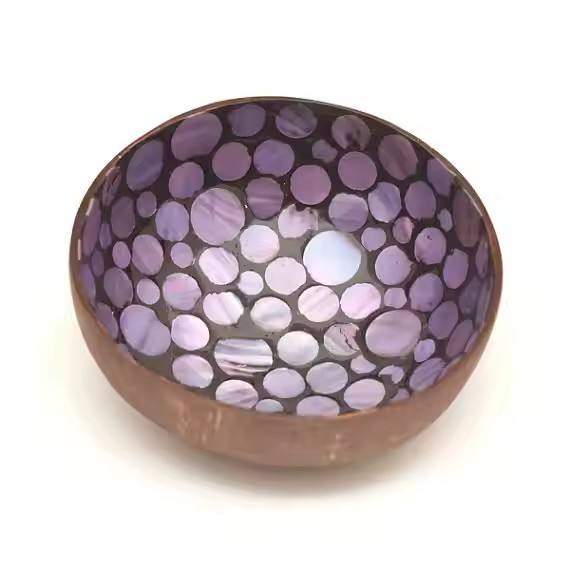 Elegant Handmade Blue Sea Coconut Bowl with Mother of Pearl Colorful Painted Bowl Set for Party or Christmas Gift