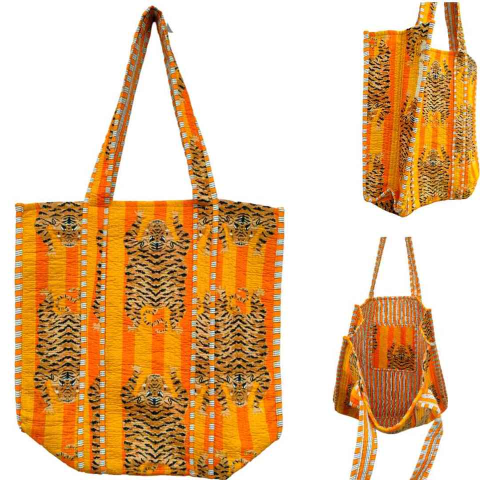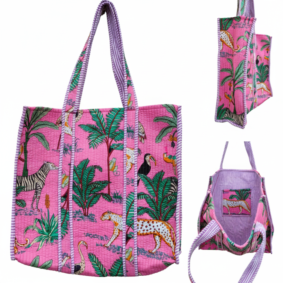 Elegant Handmade Tote Bag with Hand block Print Quilted