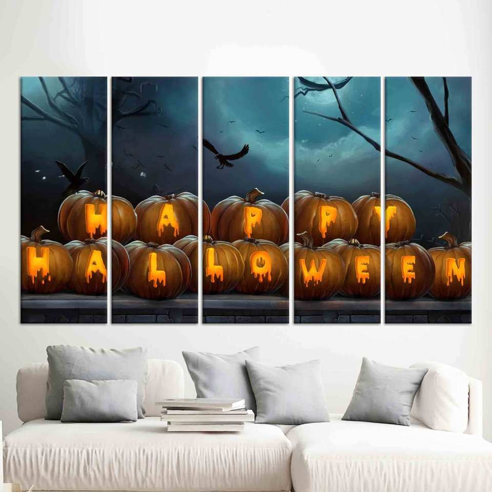 Elegant Happy Halloween Canvas Decor - Printed Wall Art for Home,5P:Gallery Wrapped