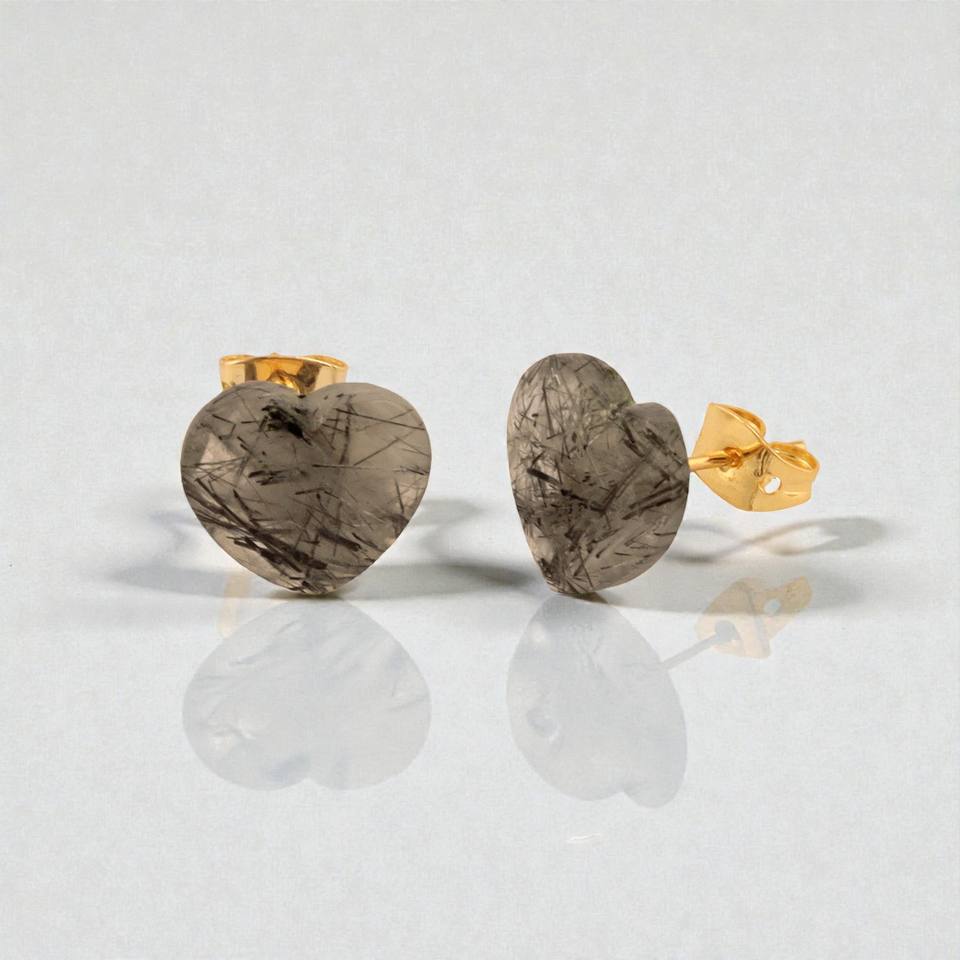 Elegant Heart Shaped Stud Earrings for Women Black Rutilated Quartz Faceted Stone Gold Plated Fashion Moissanite Jewelry Gift