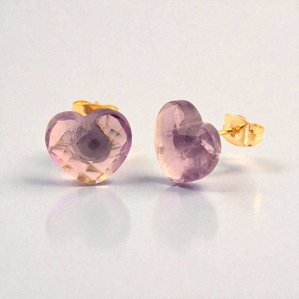 Elegant Heart Shaped Stud Earrings for Women Amethyst Quartz Faceted Stone Gold Plated Fashion Moissanite Jewelry Gift for Her