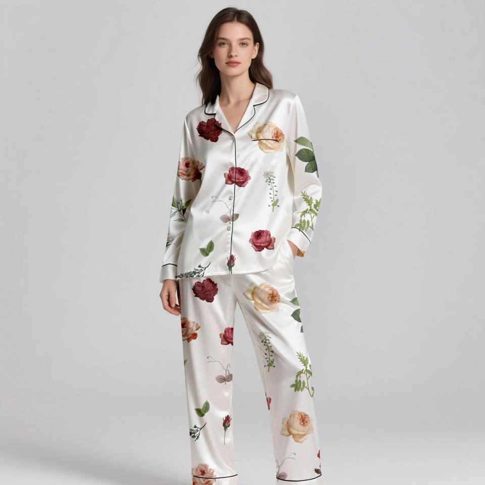 Elegant High End Breathable Silk Satin Pajama Set for Women Summer Spring 120-150 GSM