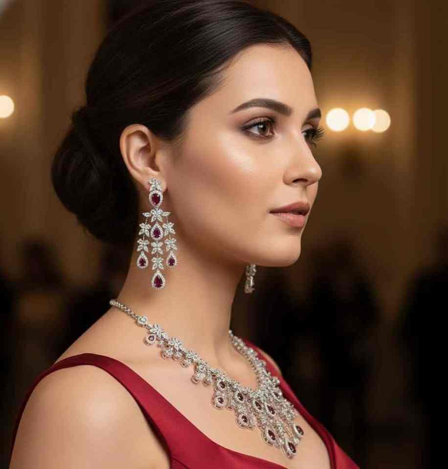 Elegant High-End Royal Bridal Jewelry Necklace and Earring Set for Women Party & Gifting Use Available at Wholesale Bulk Supply