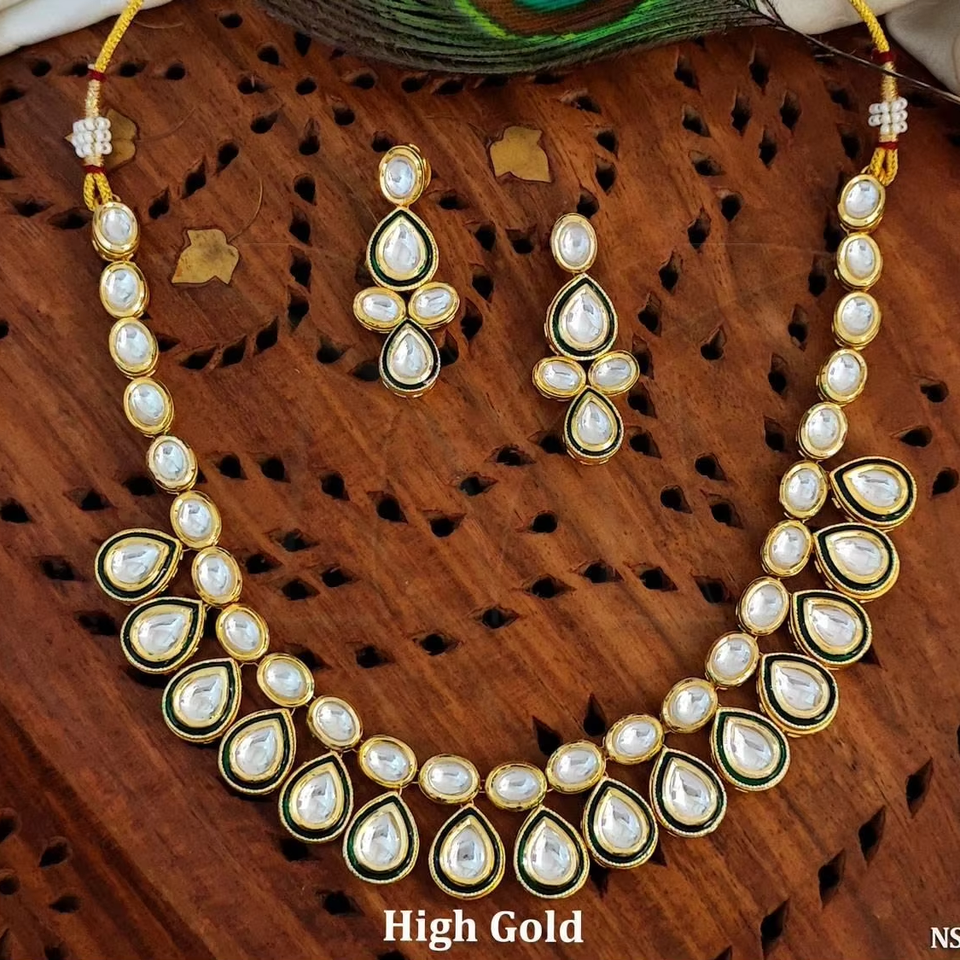 Elegant High Gold Kundan Necklace Set with Teardrop Stones Traditional Bridal Jewelry for Weddings And Festive Wear