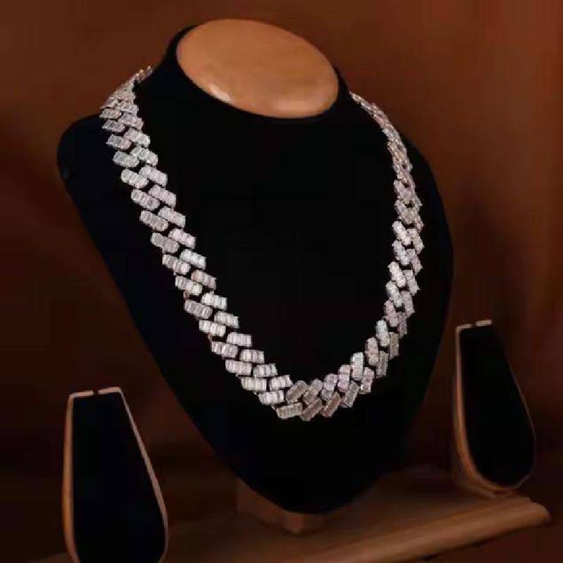 Elegant Hip Hop Cuban Link Necklace Shiny Statement Chain Brilliant Cut Lab Grown Diamond Stones White Gold Plated for Certified