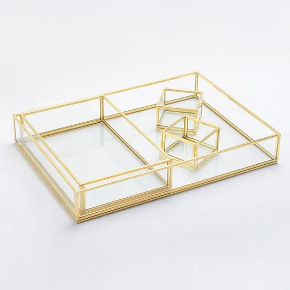 Elegant Home Decor Brass and Glass Organizer & Storage Tray for Home and Office Use