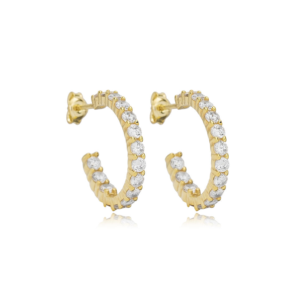 Elegant Hoop Shiny Round Zircon Stone Earrings Popular Wholesale 925 Sterling Silver Handcrafted Turkish Jewelry