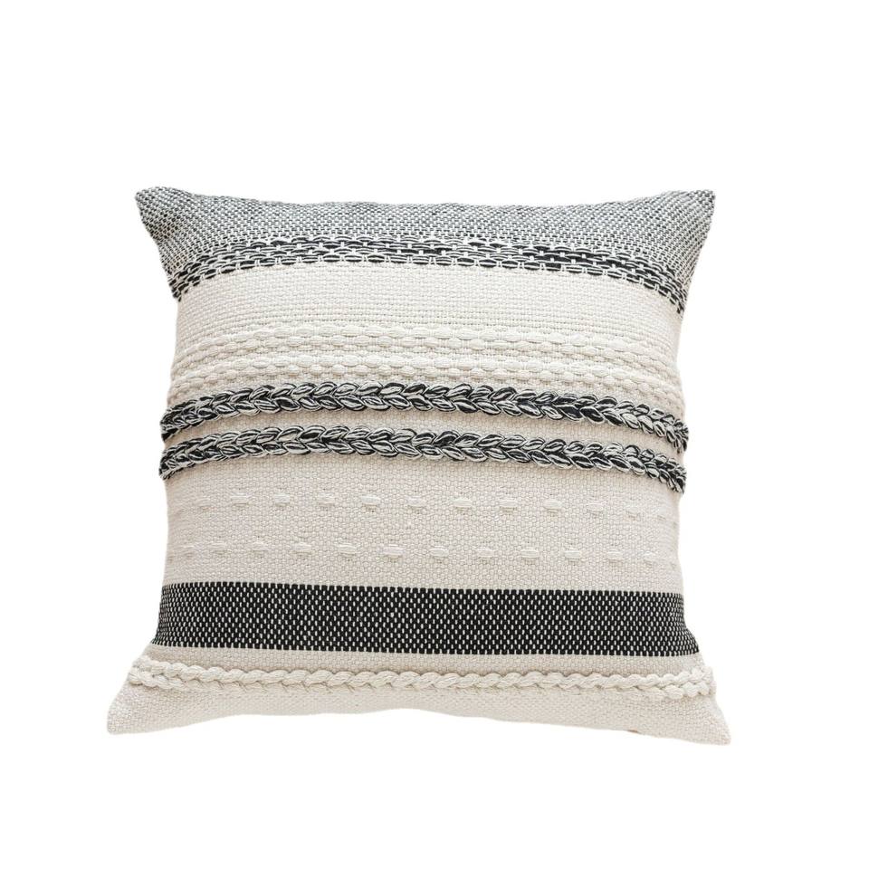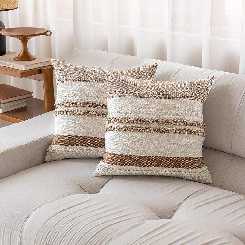Elegant Horizontal Braided Throw Pillow Rectangle Linen Cotton Mix Striped Design For Living Room Sofa Bedside Home Decor