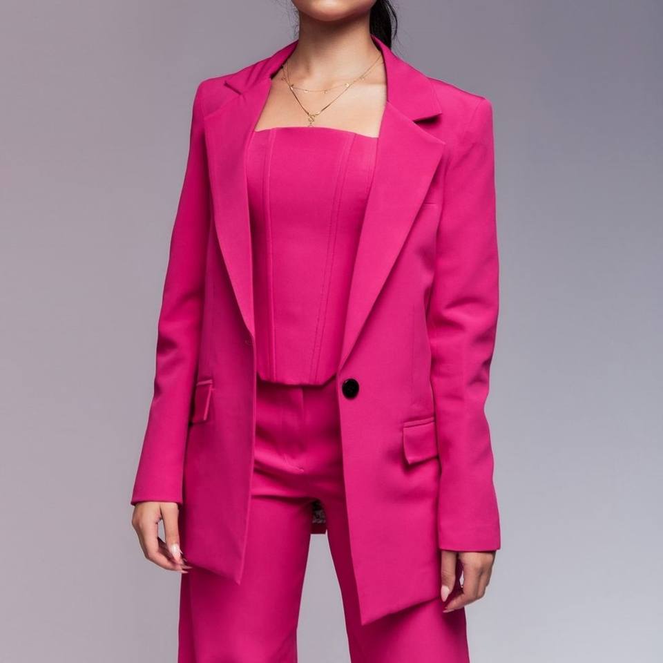 Elegant Hot pink 3pieces Women Satin Corset Vintage Body Shaping Shapewear Breathable Button Decoration Matching Coat & Pant