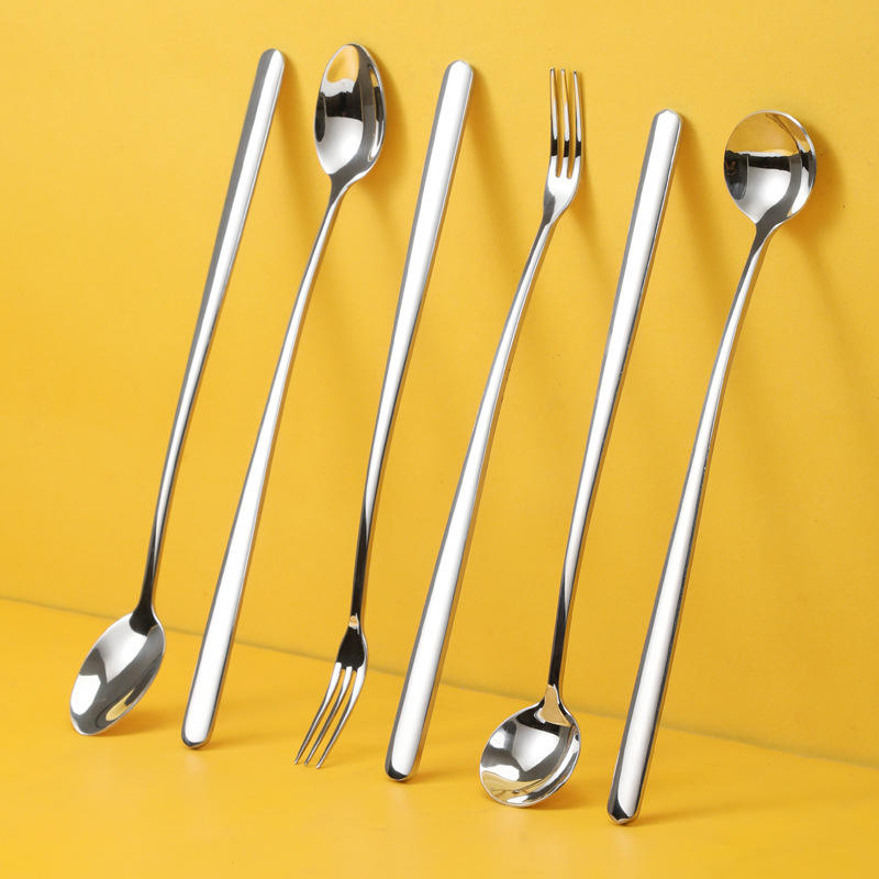 Elegant Ice Spoon 304 Stainless Steel Long Handle Stirring Spoon Thickened Dessert Honey Spoon Reusable Solid Color