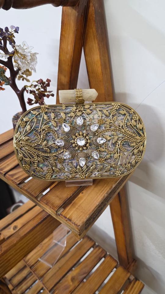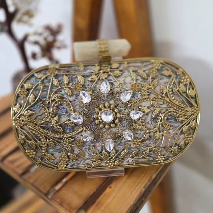 Elegant Indian Fashion Large Open Evening Clutch Bag Mother of Pearl Wedding Bridal Party