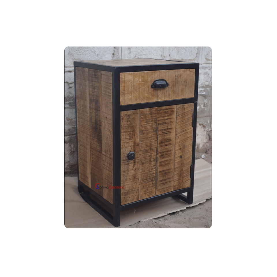 Product Name:Iron Wooden 1 Drawer 1 Door Bedside Side End Table
