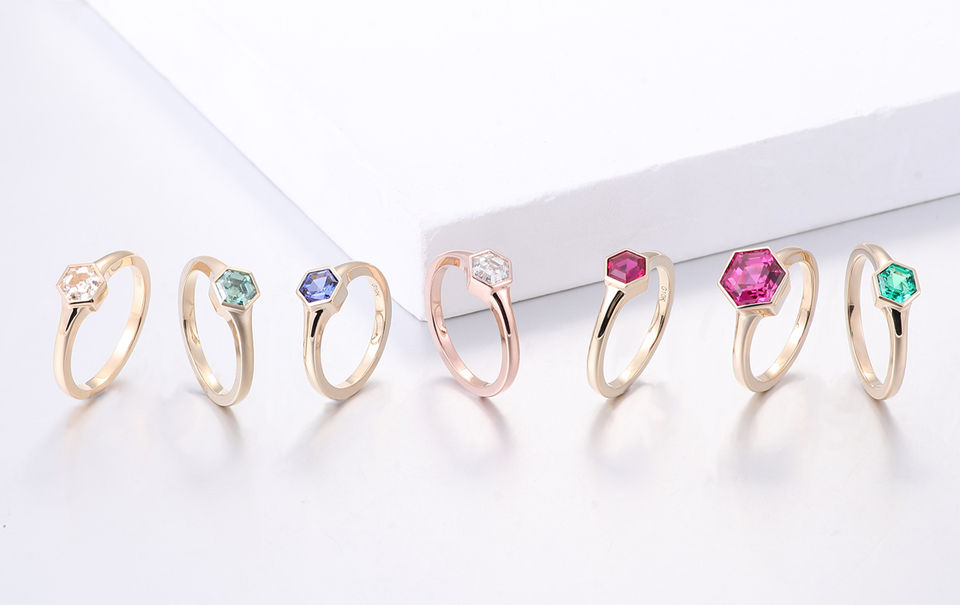 Elegant Jewelry 14K Solid Gold Lab Gemstone Solitaire Ring Rainbow Color Hexagon Lab Sapphire Moissanite Wedding Rings