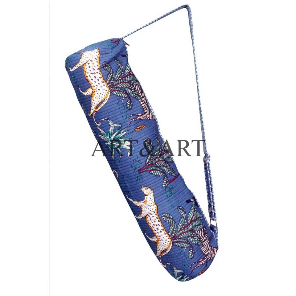 Jungle Printed Hand Block Yoga Kit Bag for Women with Small Pocket Soft Long Handle Recyclable Material Made India from women