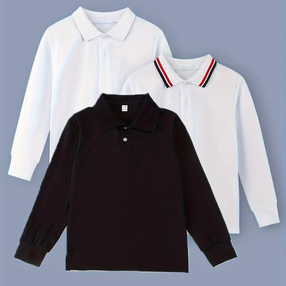 Elegant Kids' Long-Sleeve Jersey Shirt Solid Color Compressed Stretch Fabric Machine Washable for Spring/Fall Made in Bangladesh