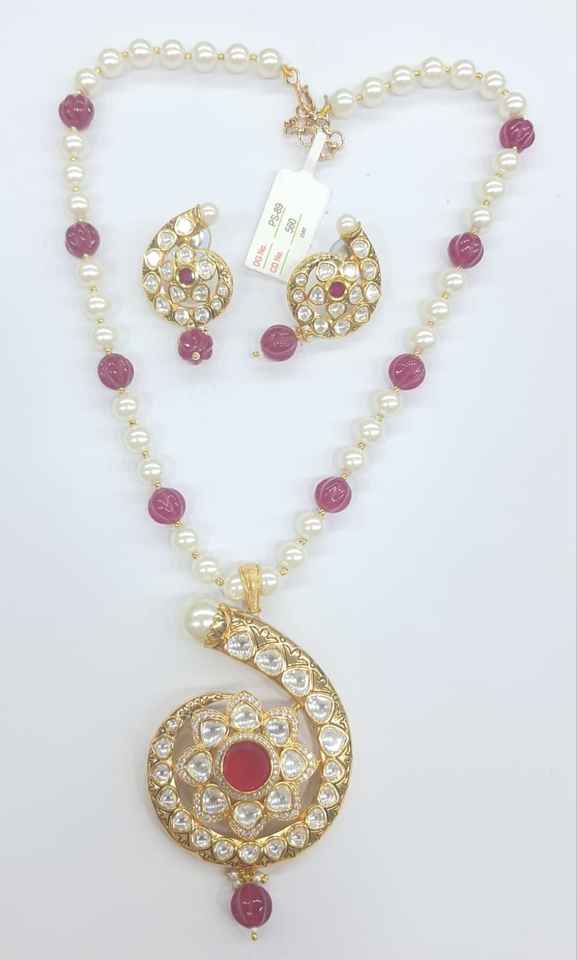 Elegant Kundan Pendant Necklace Set with Green Stones and Matching Earrings for Women Perfect for Traditional Occasions