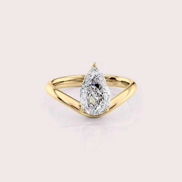 Elegant Lab-Created Pear Shaped Diamond Ring in Sustainable 9K Yellow / White / Rose Gold Sustainable Jewelry
