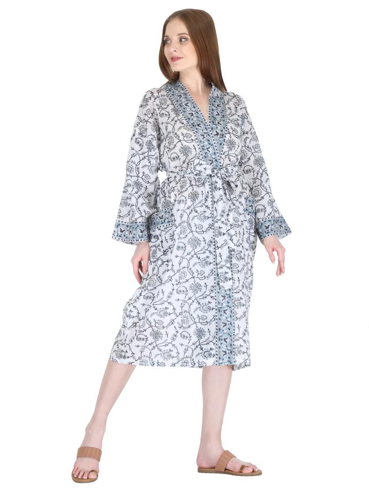 Elegant Ladies Kimono with Floral Printed Belt Fashionable Handblock Cotton Kimono for Summer and Spring Vacations at Beach