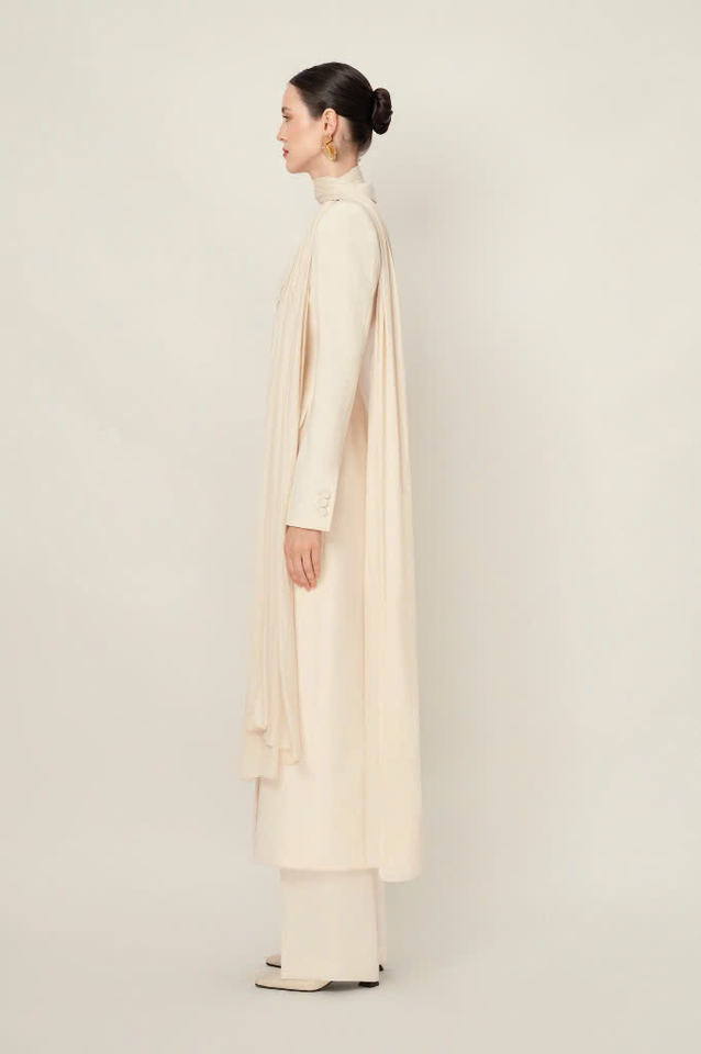 Elegant Ladies' Suit Dress with Scarf Detail Viola Long Double-Breasted ODM Services Made in Vietnam