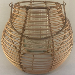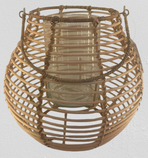 Elegant Lantern with Iron Frame Natural Rattan Weave and Clear Glass Panels for Stylish Indoor and Outdoor Decor