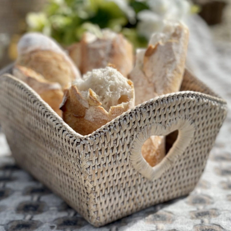 Elegant Large White Rattan Basket Perfect for Serving Bread, Displaying Fruit & Organizing Small Essentials From Vietnam