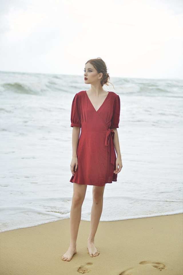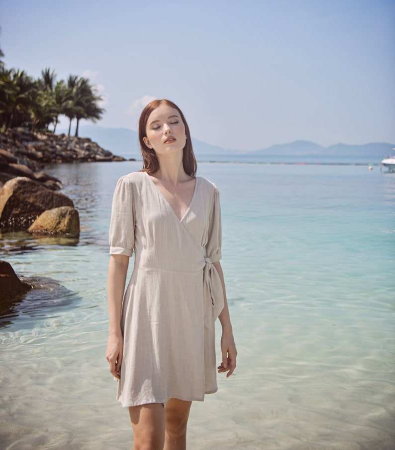Women's Elegant Lightweight Cotton Linen Wrap Dress Comfortable Daily Wear Wraparound Design with Natural Waistline