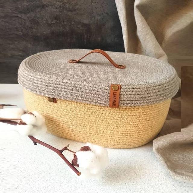 Elegant Look Woven Cotton Rope Basket With Lid for Kids Room Toys Storage Basket Home Decorative Accessories Storage Baskets