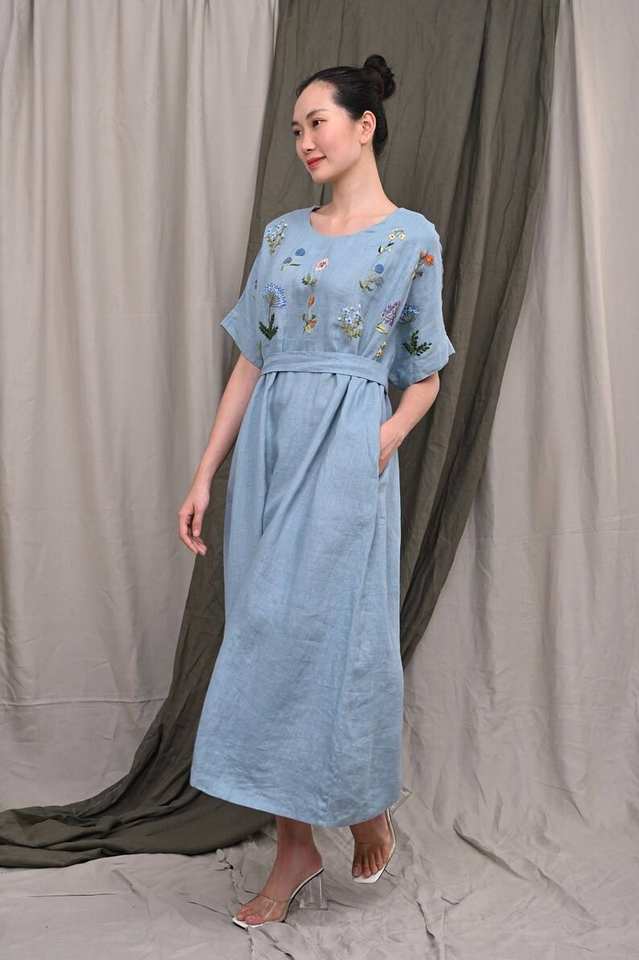 Elegant Loose Fit Linen Dress JOSIE Handmade Embroidered Clothing Ideal For Wedding Guests