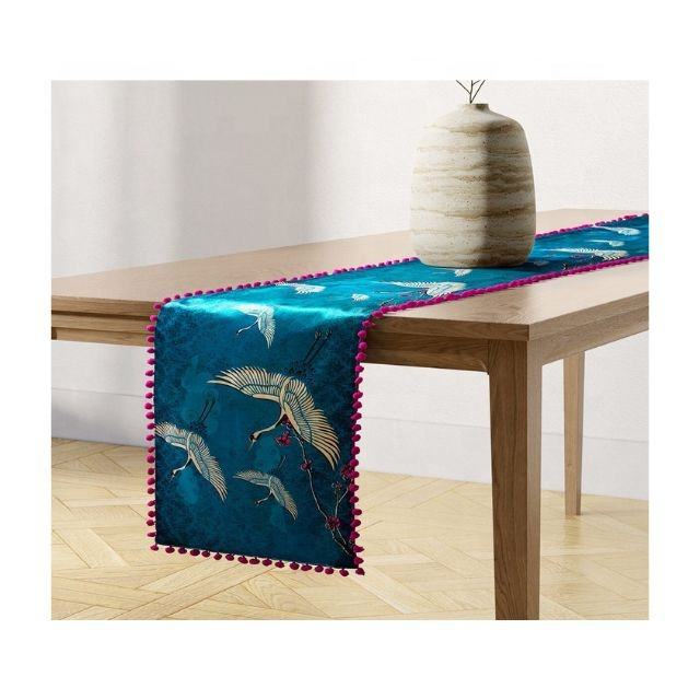 Elegant Luxurious 100% Organic Velvet Grey Border Table Cloth Customized Pattern Designed Soft Runners Direct Factory Sale