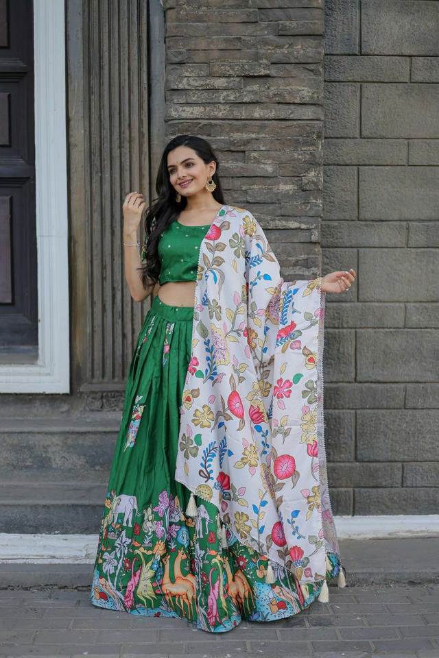 Elegant Luxurious 3.5 Meter Flair Beautiful Trendy Color Soft Dola Silk Fabric Bridal Lehenga Choli Ethnic Wear at Low Price