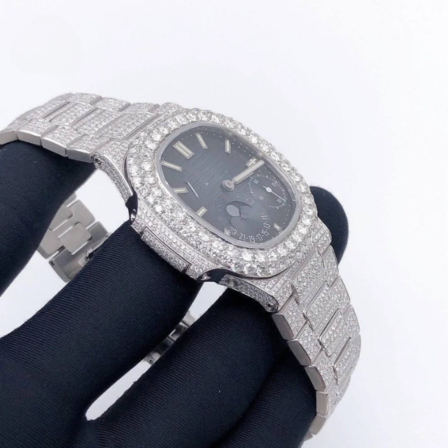 Elegant Luxurious Fashion Business Hip Hop Style Iced Stainless Steel Glass Moissanite Diamond Setting Wrist Watch for Men Women