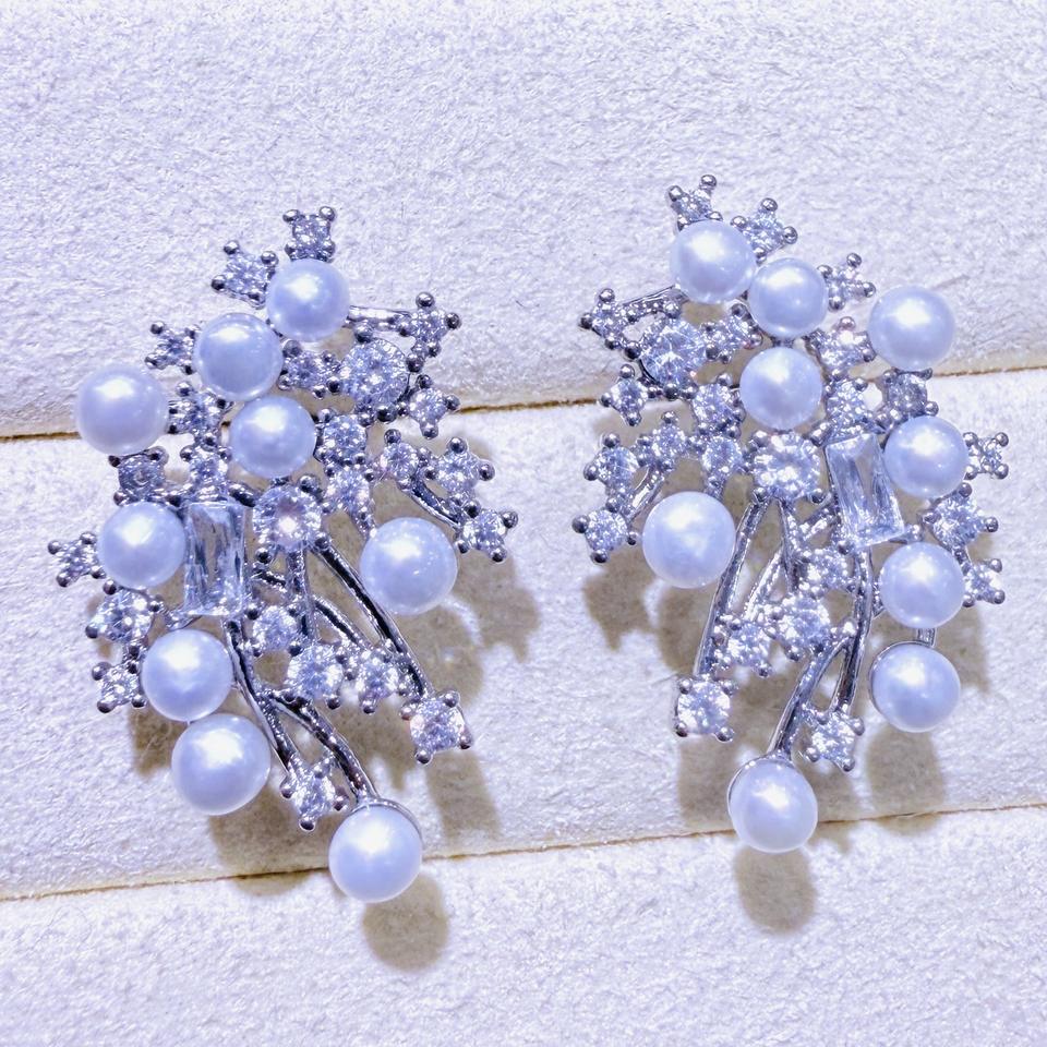 Elegant Luxurious Fine Dangle Earrings for Female Multi-pearl Nebula Design with Freshwater Pearls Diamond Fashionable & Stylish