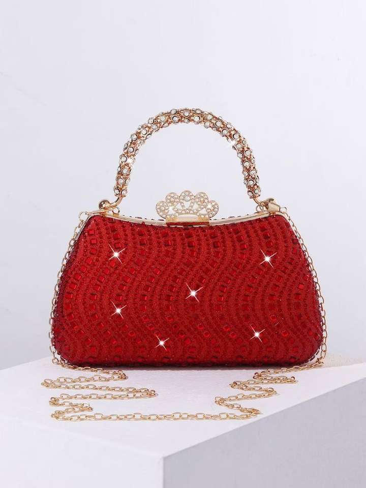 Elegant & Luxurious Red Chain-Embellished Casual Tote Bag with Zipper Closure Waterproof Evening Purse for Women
