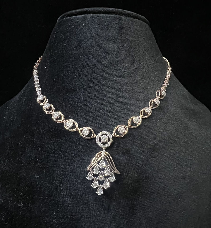 14K Gold Natural Diamond Round Brilliant Cut Necklace Set for Women Third Party Certified Elegant & Luxurious Jewelry Design