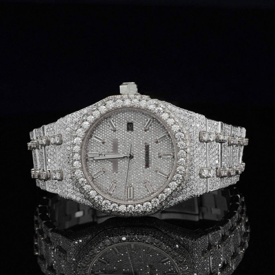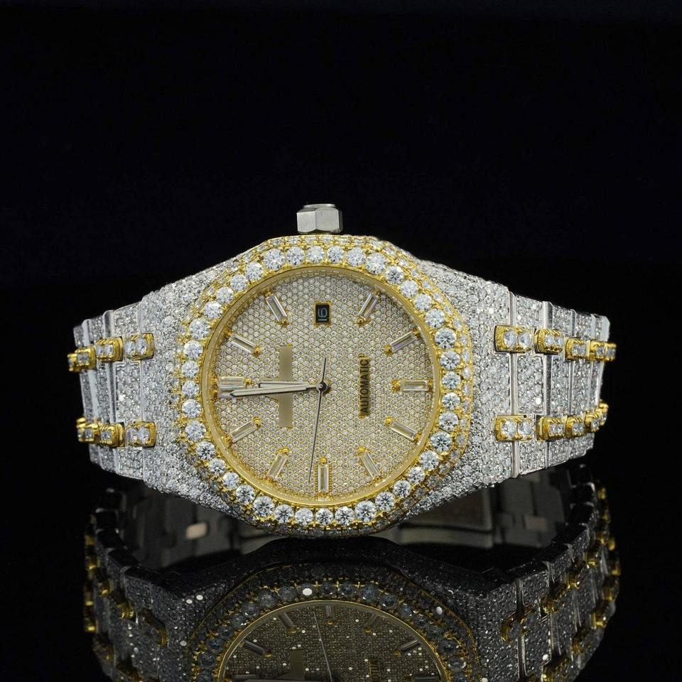 Elegant Luxury Automatic Stainless Steel Buss Fully Iced HPHTLab Grown Diamond Watch Unisex Sapphire Crystal Glass Mechanical