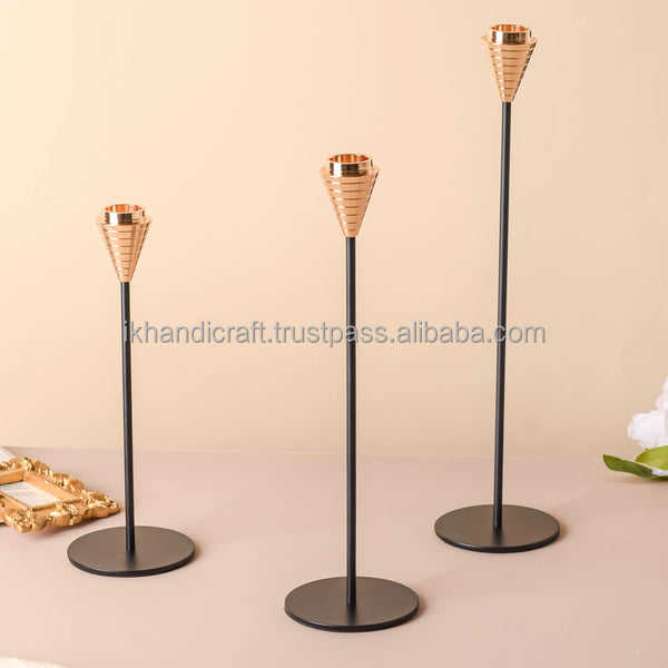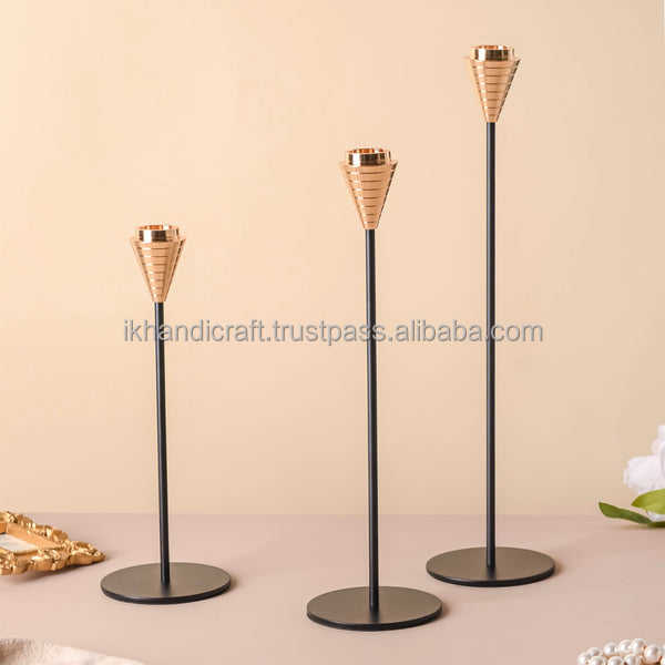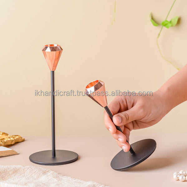 Elegant Luxury Handmade Brass Bronze Taper Candle Holder Premium Home Christmas Ramadan Decor Metal Candle Stand Crystal Garden