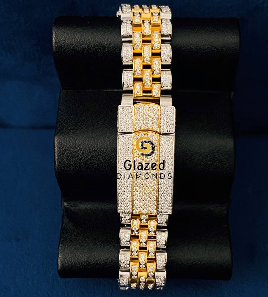 Elegant Luxury Mechanical Watch Men Fully Iced Stainless Steel Moissanite VVS Clarity Glass Dial Analog Display Date Two Tone
