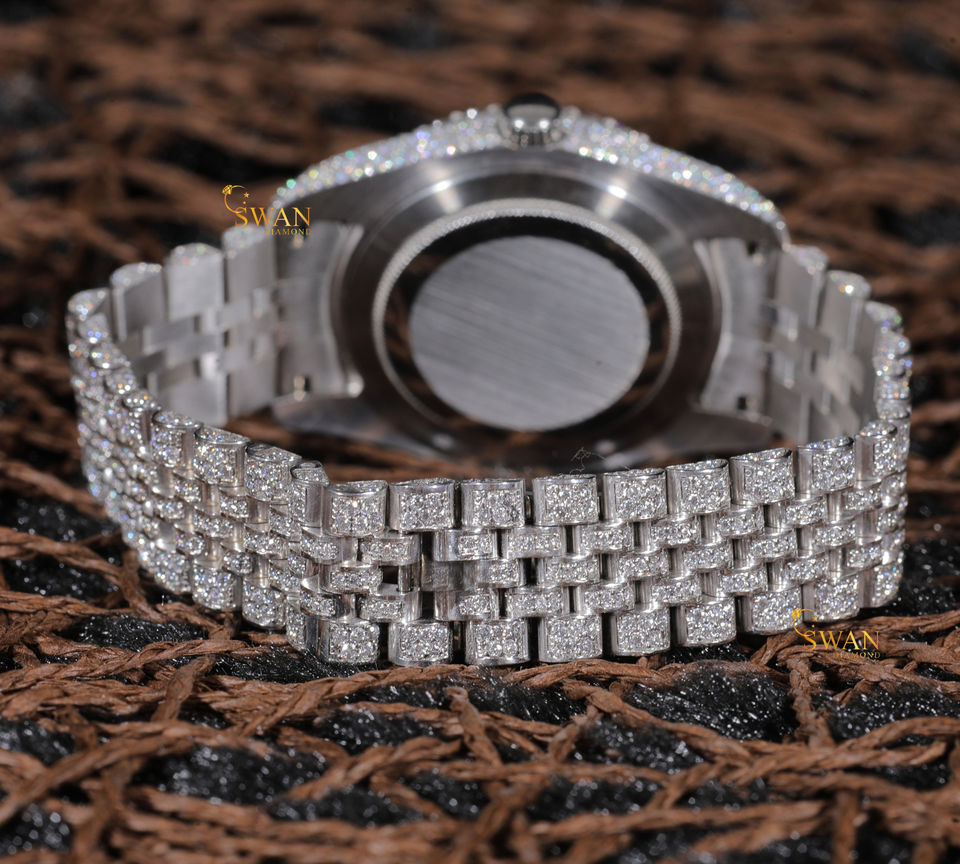 Elegant Luxury Men's Mechanical Watch Fully Iced Stainless Steel Moissanite VVS Clarity Analog Display Tourbillon Date Day
