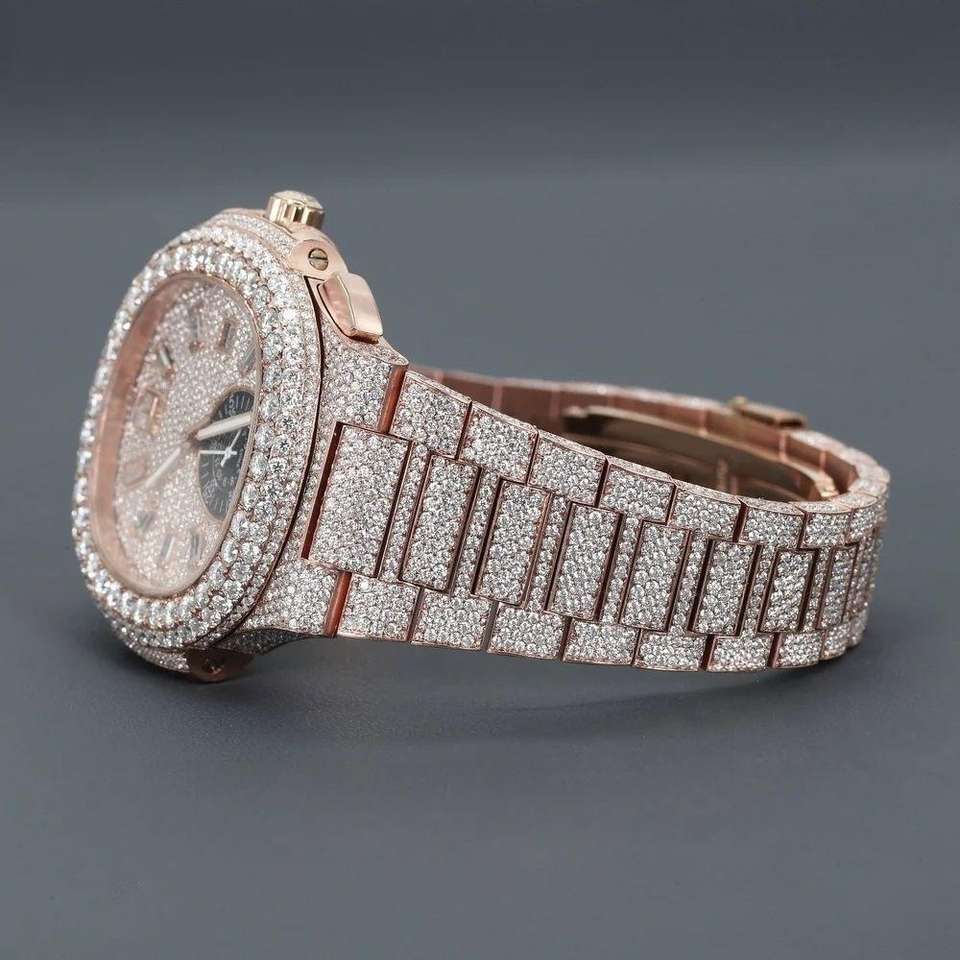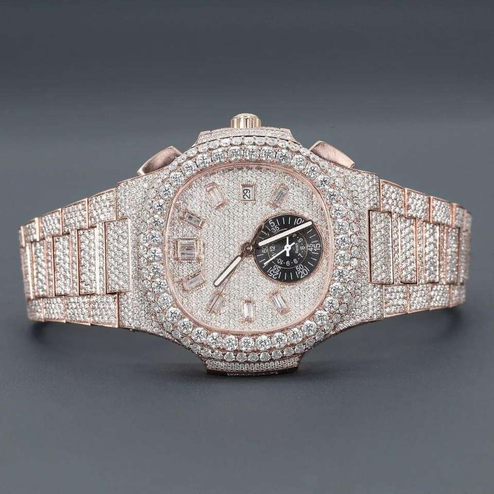 Elegant Luxury Mens Mechanical Watch Round and Baguette Moissanite Diamond Unique Watch Analog Display Business Style Mens Watch