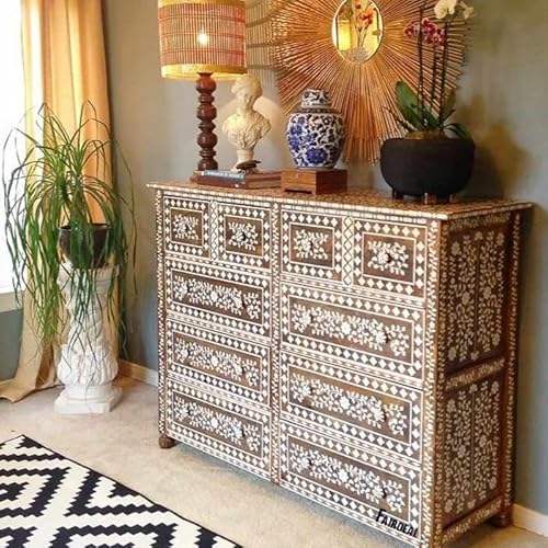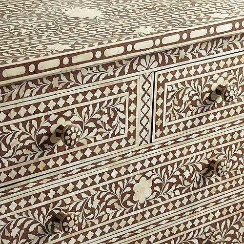 Elegant Luxury Modern Stainless Steel Bone Inlay Chest of Drawers Handmade Intricate Design Furniture for Home & Living Room