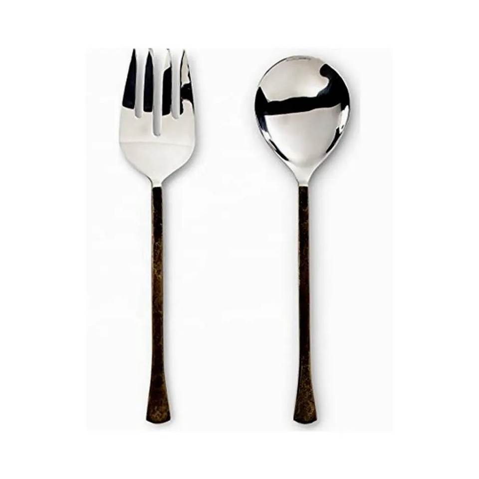 Elegant Luxury Modern Stainless Steel Salad Server with Serving Spoon & Fork Eco-Friendly Dishwasher Safe Tabletop Salad Tools