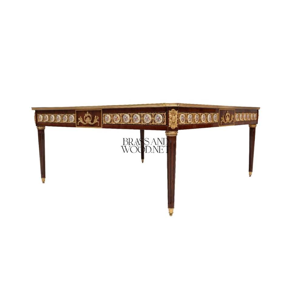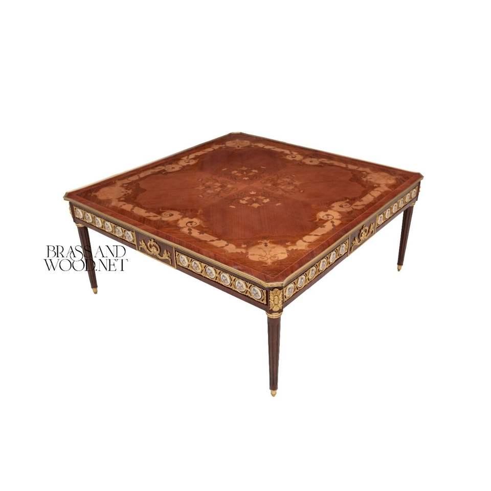Elegant Luxury Square Coffee Table with Intricate Inlay Brass Detailing and Floral Patterns for Timeless Living Room Decor