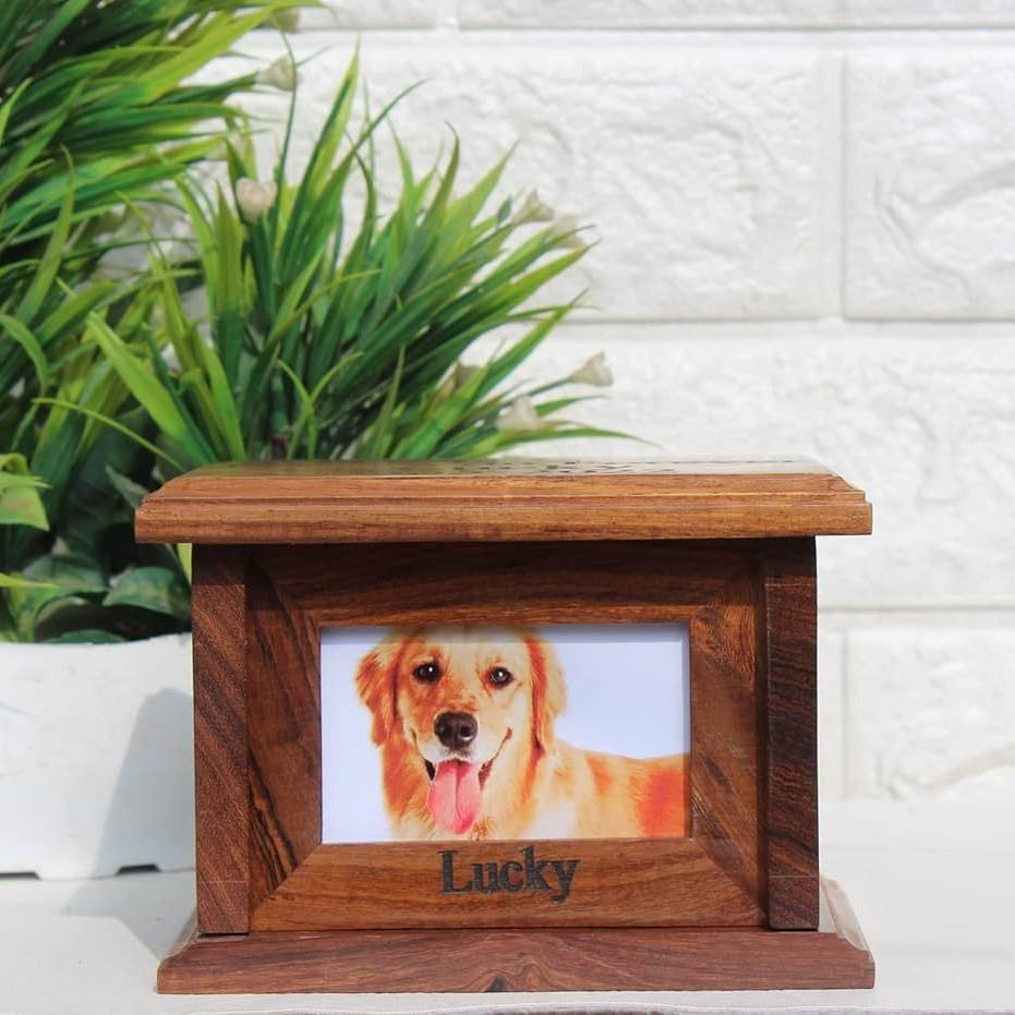Elegant Mahogany Wood Pet Casket with Glossy Clear Coat Finish for Long Term Preservation