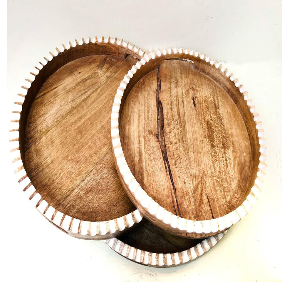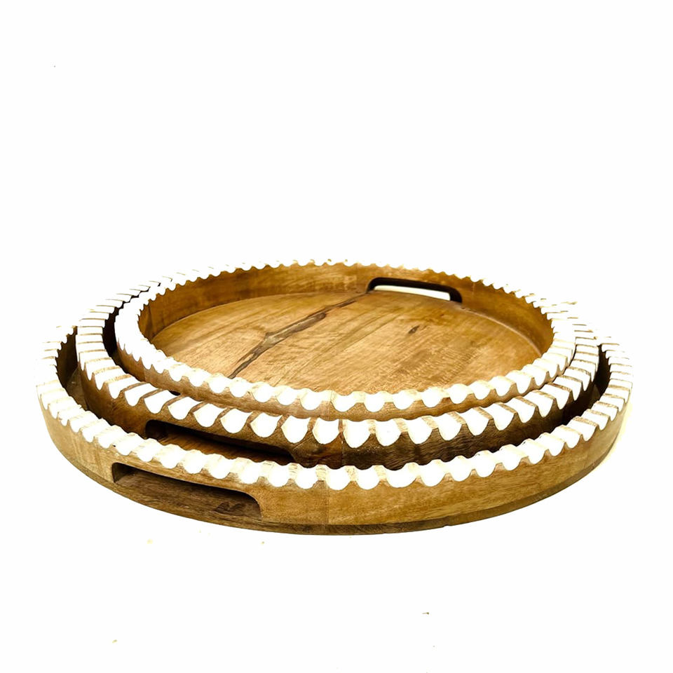 Product Name:Mango Wood Serving Tray With Handles l Set of 3