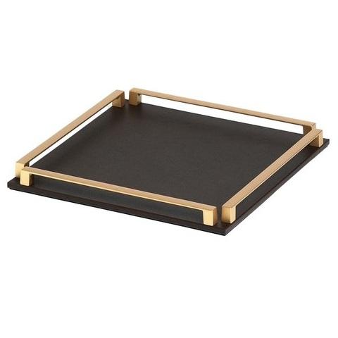 Elegant Matte Black Wooden Tray with Brushed Brass Handles Decorative Platter for Home Decor & Barware Display Decorative Tray