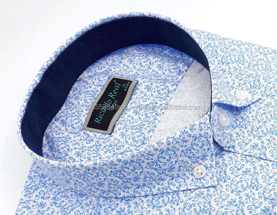 Elegant Men Shirts Long Sleeve Floral Pattern Poplin Breathable Cotton Shirt Made in Turkey Best Selling
