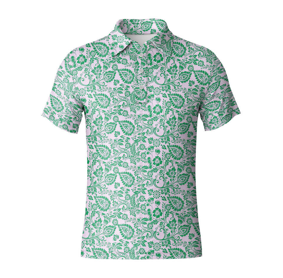 Elegant Men's Golf Polo with Vintage Floral Pattern Durable, Breathable, Premium High-Performance Golf T-shirts & Casual Outings