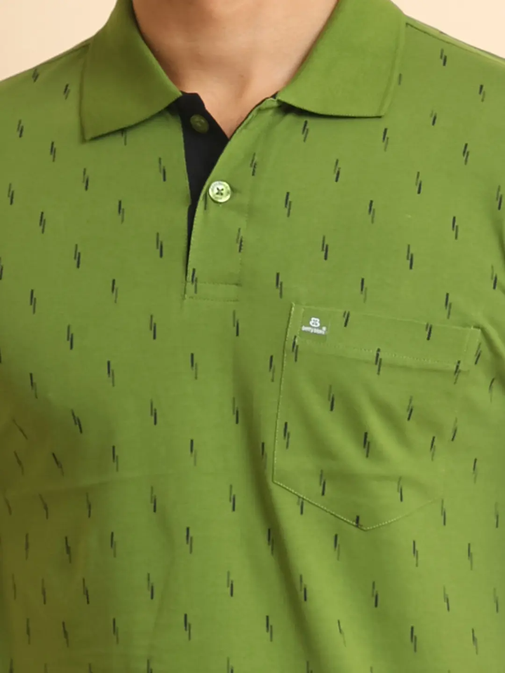 Elegant Men's Half Sleeve 100% Cotton T-Shirt for Polo Neck Printed Design Trendy Chest Pocket Casual Wear for Every Occasion